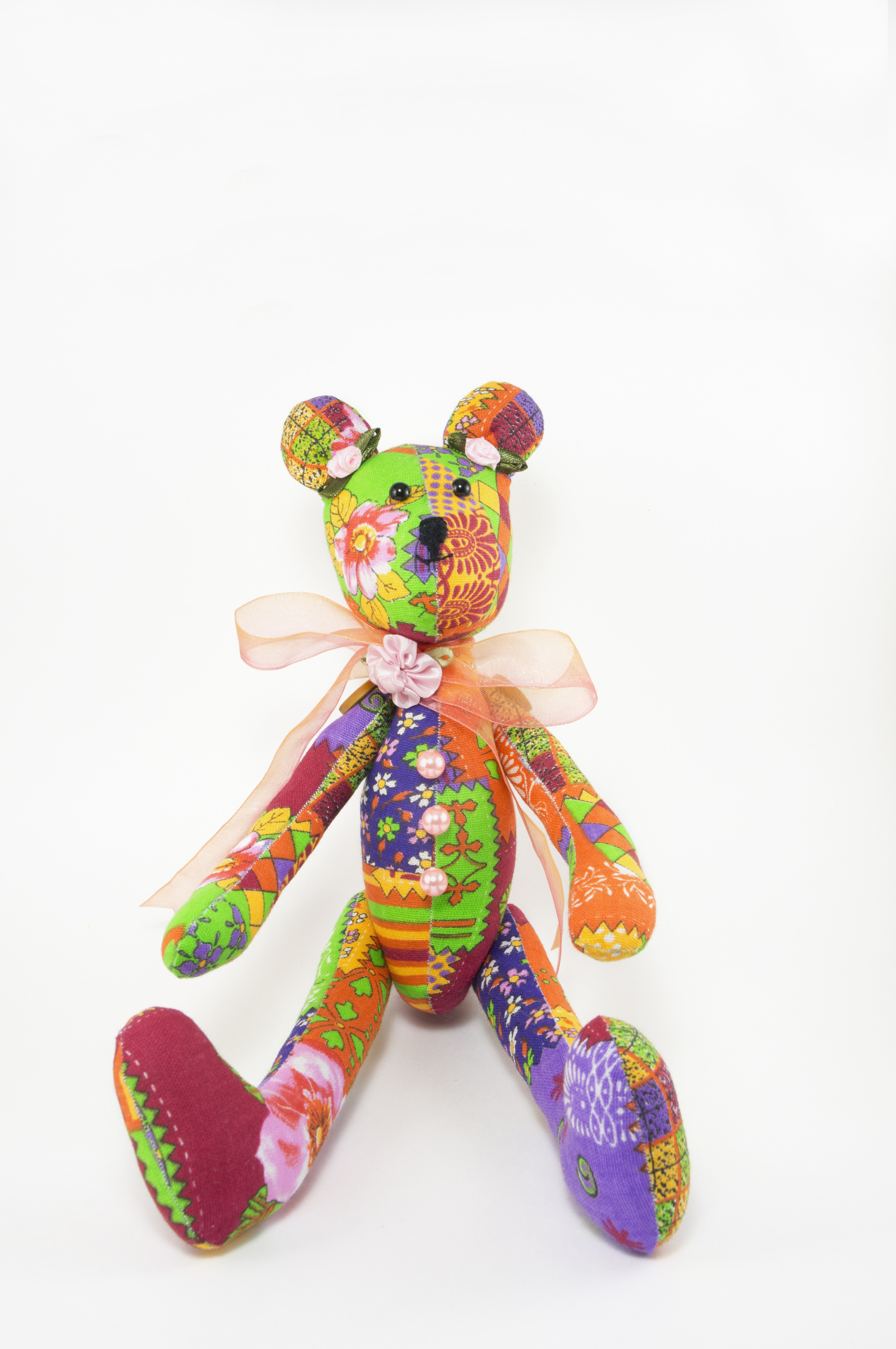 Мишка нарядный, умеет сидеть, стоять, дарить людям радость. Пуговичное крепление.